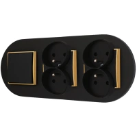 Włącznik podwójny i dwa gniazda pojedyncze z ramką okrągłą seria MINI kolor czarny złoty