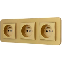 Trzy gniazda pojedyncze z ramką zaokrągloną seria MINI kolor złoty
