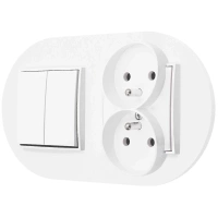 Włącznik podwójny i dwa gniazda podwójne z ramką okrągłą seria MINI kolor biały mat