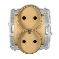 Mechanizm gniazda podwójnego do ramki bez uziemienia 2x2P bez przesłon torów prądowych Karlik seria MINI 29MGPR-2 kolor złoty
