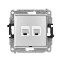 ( ilość produktów: 5448 )Mechanizm gniazda komputerowego podwójnego 2xRJ45, kat. 6, 8-stykowy Karlik seria MINI 7MGK-4 kolor srebrny metalik