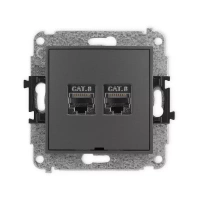 ( ilość produktów: 5448 )Mechanizm gniazda komputerowego podwójnego 2xRJ45, kat. 8, ekranowany, 8-stykowy Karlik seria MINI 28MGK-12 kolor grafitowy mat