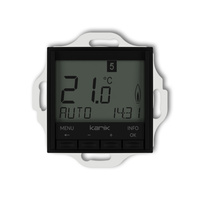 ( ilość produktów: 5448 )Mechanizm uniwersalnego elektronicznego tygodniowego regulatora temperatury podświetlenie białe Karlik seria MINI 12MRT-3.1 kolor czarny mat