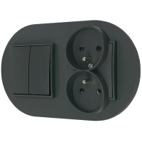 Włącznik podwójny i dwa gniazda podwójne z ramką okrągłą seria MINI kolor grafitowy mat